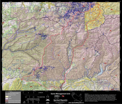 GMU 74 Hunting Map is the top-of-the-line map with the most reliable quality found on the market. Comprised of detailed contours and hillshade with geographic names, public lands, animal locations and movements, roads, water bodies, and many other terrain and location markers. This map indicates ...
