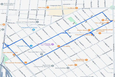 A map of the Five Points trek for the 2025 Urban Treks Challenge.