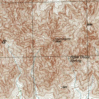 A 1996 historical topographic map of Agua Dulce Mountains in Arizona produced by the United States Geological Survey (USGS). It shows contour lines, place names, water bodies and roads. Map services and data available from U.S. Geological Survey, National Geospatial Program. Map was obtained from...