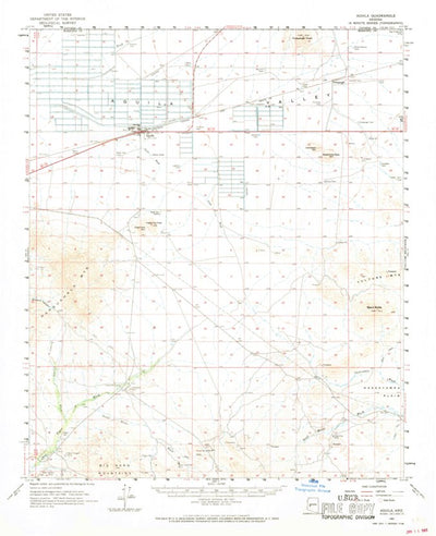 A 1962 historical topographic map of Aguila in Arizona produced by the United States Geological Survey (USGS). It shows contour lines, place names, water bodies and roads. Map services and data available from U.S. Geological Survey, National Geospatial Program. Map was obtained from https://www.s...