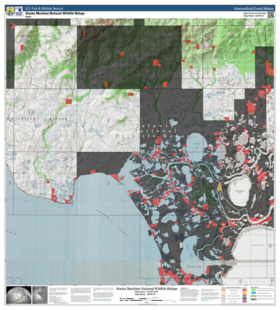 This is a map of Alaska Maritime National Wildlife Refuge within the State of Alaska. It depicts the refuge and wilderness boundaries, hillshaded topography, and Federal, State of Alaska, and private ownership boundaries within Alaska Maritime NWR.