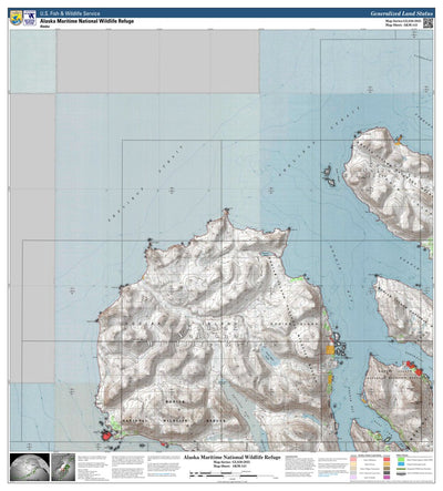 This is a map of Alaska Maritime National Wildlife Refuge within the State of Alaska. It depicts the refuge and wilderness boundaries, hillshaded topography, and Federal, State of Alaska, and private ownership boundaries within Alaska Maritime NWR.