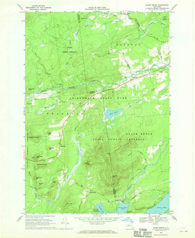 A 1968 historical topographic map of Alder Brook in New York produced by the United States Geological Survey (USGS). It shows contour lines, place names, water bodies and roads. Map services and data available from U.S. Geological Survey, National Geospatial Program. Map was obtained from https:/...