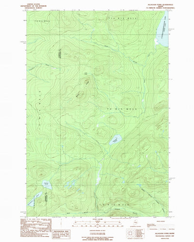 A 1989 historical topographic map of Allagash Pond in Maine produced by the United States Geological Survey (USGS). It shows contour lines, place names, water bodies and roads. Map services and data available from U.S. Geological Survey, National Geospatial Program. Map was obtained from https://...