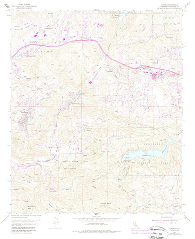 A 1955 historical topographic map of Alpine in California produced by the United States Geological Survey (USGS). It shows contour lines, place names, water bodies and roads. Map services and data available from U.S. Geological Survey, National Geospatial Program. Map was obtained from https://ww...