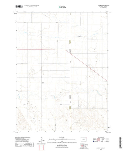 A digital topographic map of Amherst SE in Colorado produced by the United States Geological Survey (USGS) in 2022. The map is part of the National Map series of 7.5 minute quadrangle maps. It shows contour lines, place names, water bodies and roads. Map services and data available from U.S. Geol...