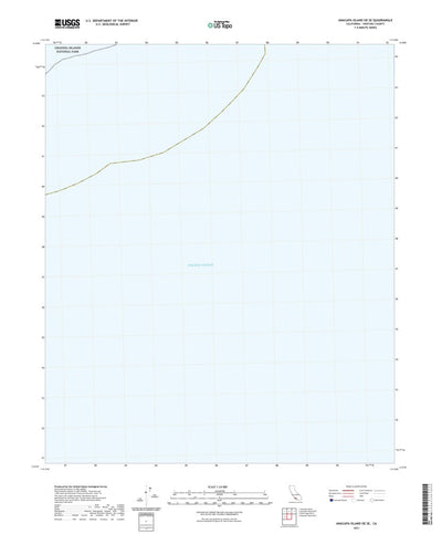 A digital topographic map of Anacapa Island OE SE in California produced by the United States Geological Survey (USGS) in 2021. The map is part of the National Map series of 7.5 minute quadrangle maps. It shows contour lines, place names, water bodies and roads. Map services and data available fr...