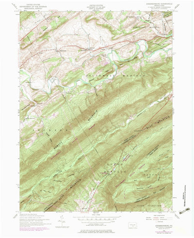 A 1952 historical topographic map of Andersonburg in Pennsylvania produced by the United States Geological Survey (USGS). It shows contour lines, place names, water bodies and roads. Map services and data available from U.S. Geological Survey, National Geospatial Program. Map was obtained from ht...