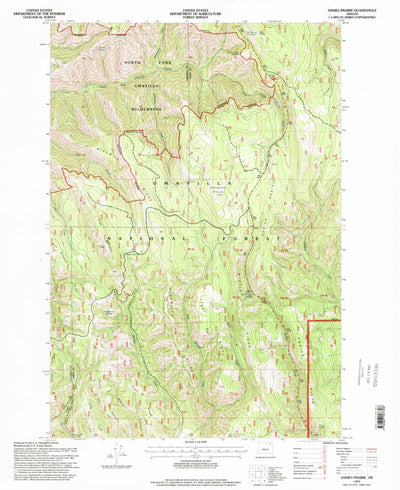 A 1995 historical topographic map of Andies Prairie in Oregon produced by the United States Geological Survey (USGS). It shows contour lines, place names, water bodies and roads. Map services and data available from U.S. Geological Survey, National Geospatial Program. Map was obtained from https:...