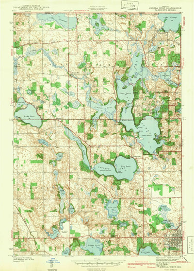 A 1942 historical topographic map of Angola West in Indiana produced by the United States Geological Survey (USGS). It shows contour lines, place names, water bodies and roads. Map services and data available from U.S. Geological Survey, National Geospatial Program. Map was obtained from https://...