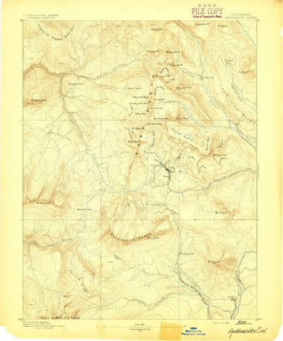 A 1893 historical topographic map of Anthracite in Colorado produced by the United States Geological Survey (USGS). It shows contour lines, place names, water bodies and roads. Map services and data available from U.S. Geological Survey, National Geospatial Program. Map was obtained from https://...