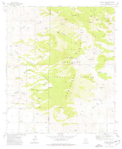 A 1973 historical topographic map of Apache Peak in Arizona produced by the United States Geological Survey (USGS). It shows contour lines, place names, water bodies and roads. Map services and data available from U.S. Geological Survey, National Geospatial Program. Map was obtained from https://...