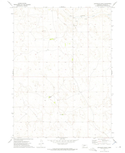 A 1972 historical topographic map of Applegate Ranch in Nebraska produced by the United States Geological Survey (USGS). It shows contour lines, place names, water bodies and roads. Map services and data available from U.S. Geological Survey, National Geospatial Program. Map was obtained from htt...
