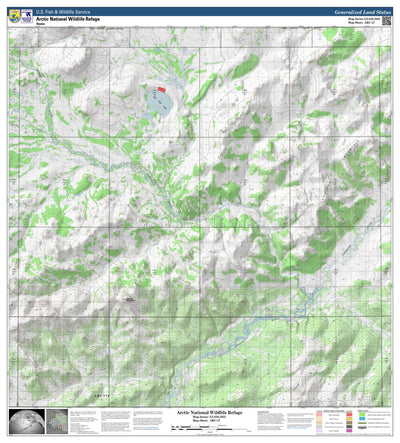 This is a map of Arctic National Wildlife Refuge within the State of Alaska. It depicts the refuge and wilderness boundaries, hillshaded topography, and Federal, State of Alaska, and private ownership boundaries within Arctic NWR.