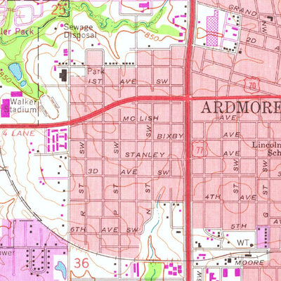 A 1964 historical topographic map of Ardmore West in Oklahoma produced by the United States Geological Survey (USGS). It shows contour lines, place names, water bodies and roads. Map services and data available from U.S. Geological Survey, National Geospatial Program. Map was obtained from https:...