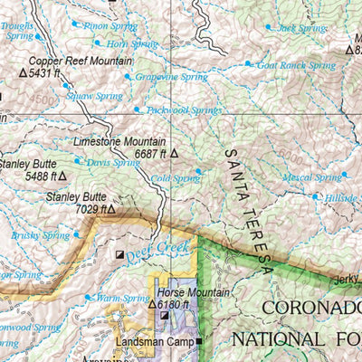 Topographic maps with elevation contours, major highways and roads, dirt roads, trails and land use data