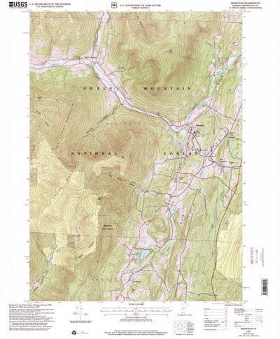 A 1997 historical topographic map of Arlington in Vermont produced by the United States Geological Survey (USGS). It shows contour lines, place names, water bodies and roads. Map services and data available from U.S. Geological Survey, National Geospatial Program. Map was obtained from https://ww...