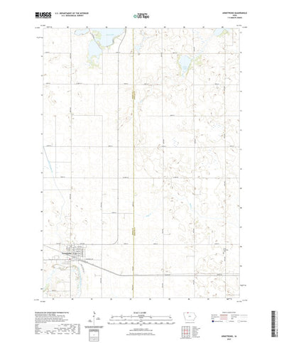 A digital topographic map of Armstrong in Iowa produced by the United States Geological Survey (USGS) in 2022. The map is part of the National Map series of 7.5 minute quadrangle maps. It shows contour lines, place names, water bodies and roads. Map services and data available from U.S. Geologica...