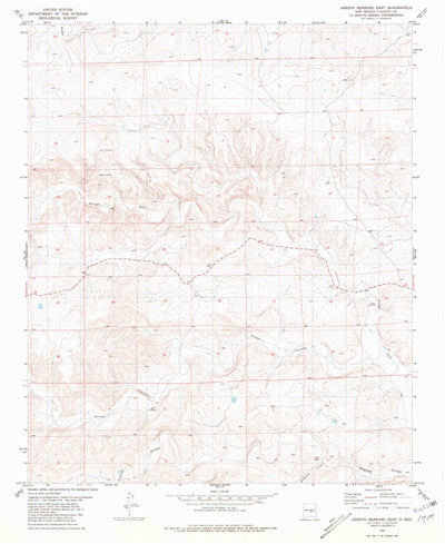 A 1981 historical topographic map of Arroyo Serrano East in New Mexico produced by the United States Geological Survey (USGS). It shows contour lines, place names, water bodies and roads. Map services and data available from U.S. Geological Survey, National Geospatial Program. Map was obtained fr...