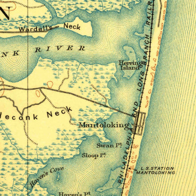 A 1888 historical topographic map of Asbury Park in New Jersey produced by the United States Geological Survey (USGS). It shows contour lines, place names, water bodies and roads. Map services and data available from U.S. Geological Survey, National Geospatial Program. Map was obtained from https...