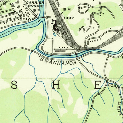 A 1936 historical topographic map of Asheville in North Carolina produced by the United States Geological Survey (USGS). It shows contour lines, place names, water bodies and roads. Map services and data available from U.S. Geological Survey, National Geospatial Program. Map was obtained from htt...