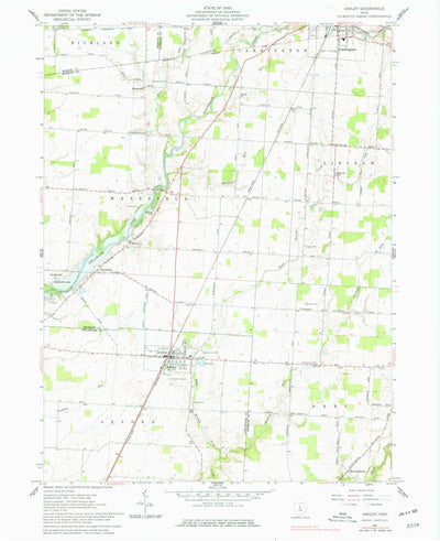 A 1961 historical topographic map of Ashley in Ohio produced by the United States Geological Survey (USGS). It shows contour lines, place names, water bodies and roads. Map services and data available from U.S. Geological Survey, National Geospatial Program. Map was obtained from https://www.scie...