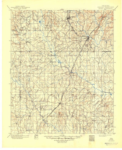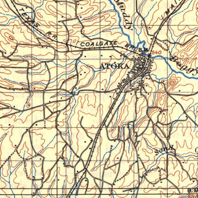 A 1900 historical topographic map of Atoka in Oklahoma produced by the United States Geological Survey (USGS). It shows contour lines, place names, water bodies and roads. Map services and data available from U.S. Geological Survey, National Geospatial Program. Map was obtained from https://www.s...