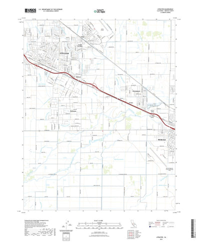 A digital topographic map of Atwater in California produced by the United States Geological Survey (USGS) in 2021. The map is part of the National Map series of 7.5 minute quadrangle maps. It shows contour lines, place names, water bodies and roads. Map services and data available from U.S. Geolo...