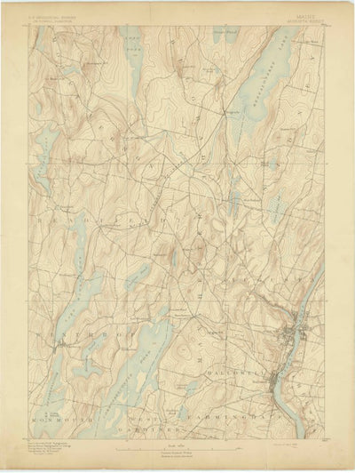 A 1892 historical topographic map of Augusta in Maine produced by the United States Geological Survey (USGS). It shows contour lines, place names, water bodies and roads. Map services and data available from U.S. Geological Survey, National Geospatial Program. Map was obtained from https://www.sc...