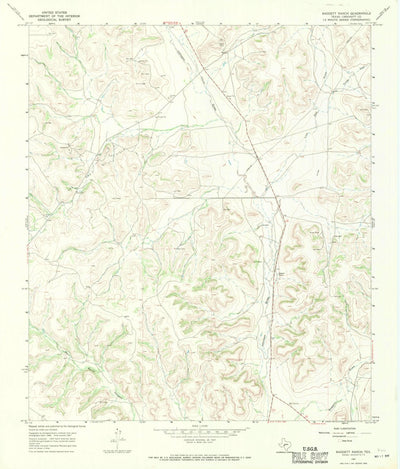 A 1967 historical topographic map of Baggett Ranch in Texas produced by the United States Geological Survey (USGS). It shows contour lines, place names, water bodies and roads. Map services and data available from U.S. Geological Survey, National Geospatial Program. Map was obtained from https://...