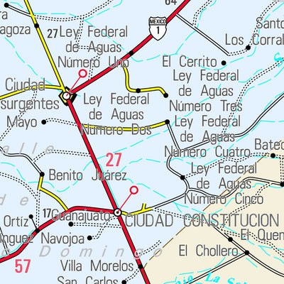 Información gráfica de las principales vías de comunicación, ubicación asentamientos, cabeceras municipales, etc.… del estado de Baja California Sur, en este mapa podrás encontrar la información de las principales autopistas divididas, autopistas, autopistas en construcción, carretera principal, ...