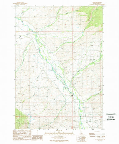 A 1989 historical topographic map of Baker in Idaho produced by the United States Geological Survey (USGS). It shows contour lines, place names, water bodies and roads. Map services and data available from U.S. Geological Survey, National Geospatial Program. Map was obtained from https://www.scie...
