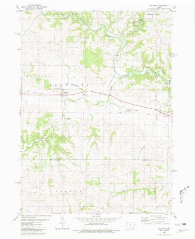 A 1980 historical topographic map of Baldwin in Iowa produced by the United States Geological Survey (USGS). It shows contour lines, place names, water bodies and roads. Map services and data available from U.S. Geological Survey, National Geospatial Program. Map was obtained from https://www.sci...