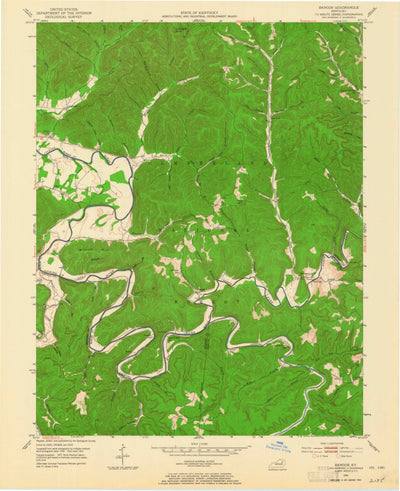 A 1953 historical topographic map of Bangor in Kentucky produced by the United States Geological Survey (USGS). It shows contour lines, place names, water bodies and roads. Map services and data available from U.S. Geological Survey, National Geospatial Program. Map was obtained from https://www....