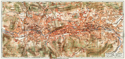 Barmen and Elberfeld (now Wuppertal) city map, 1908