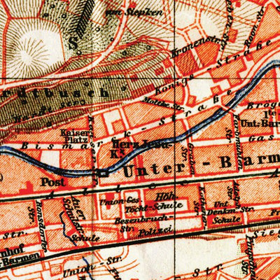 Old vintage map of Barmen and Elberfeld from 1908, in Germany, then in the German Empire, by Bibliographisches Institut, at the scale of 1:20,000. Digitally restored. A part of the Discus Media 1900 Collection.