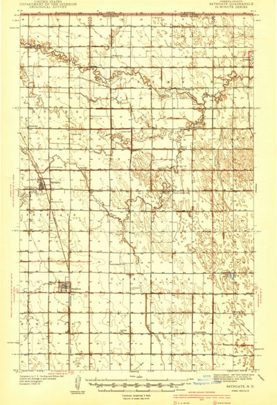 A 1941 historical topographic map of Bathgate in North Dakota produced by the United States Geological Survey (USGS). It shows contour lines, place names, water bodies and roads. Map services and data available from U.S. Geological Survey, National Geospatial Program. Map was obtained from https:...