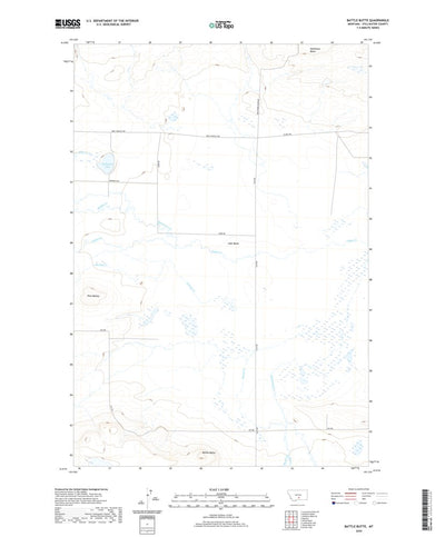 A digital topographic map of Battle Butte in Montana produced by the United States Geological Survey (USGS) in 2020. The map is part of the National Map series of 7.5 minute quadrangle maps. It shows contour lines, place names, water bodies and roads. Map services and data available from U.S. Geo...