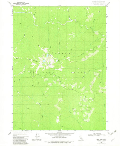 A 1982 historical topographic map of Bear Peak in California produced by the United States Geological Survey (USGS). It shows contour lines, place names, water bodies and roads. Map services and data available from U.S. Geological Survey, National Geospatial Program. Map was obtained from https:/...