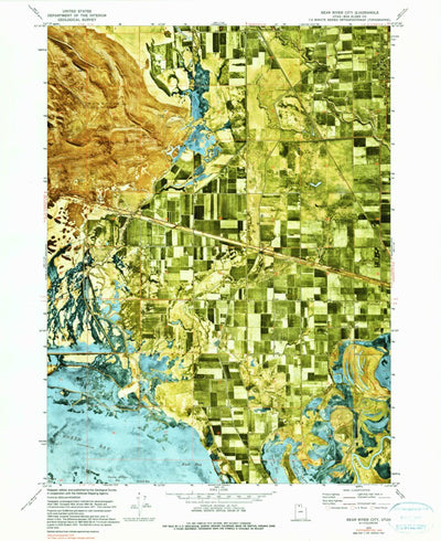 A 1972 historical topographic map of Bear River City in Utah produced by the United States Geological Survey (USGS). It shows contour lines, place names, water bodies and roads. Map services and data available from U.S. Geological Survey, National Geospatial Program. Map was obtained from https:/...