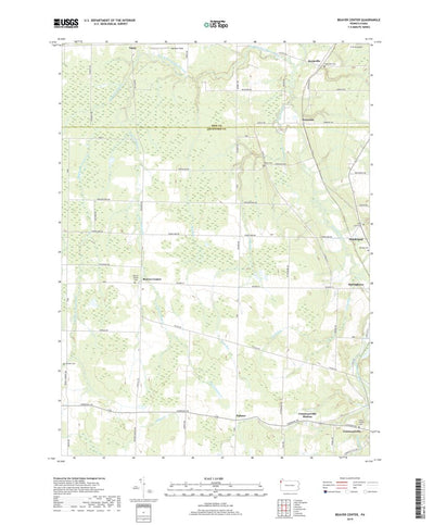 A digital topographic map of Beaver Center in Pennsylvania produced by the United States Geological Survey (USGS) in 2019. The map is part of the National Map series of 7.5 minute quadrangle maps. It shows contour lines, place names, water bodies and roads. Map services and data available from U....