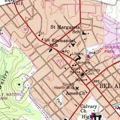 A 1956 historical topographic map of Bel Air in Maryland produced by the United States Geological Survey (USGS). It shows contour lines, place names, water bodies and roads. Map services and data available from U.S. Geological Survey, National Geospatial Program. Map was obtained from https://www...