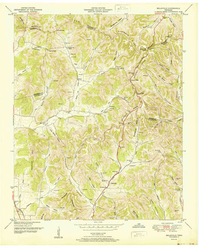 A 1951 historical topographic map of Belleville in Tennessee produced by the United States Geological Survey (USGS). It shows contour lines, place names, water bodies and roads. Map services and data available from U.S. Geological Survey, National Geospatial Program. Map was obtained from https:/...