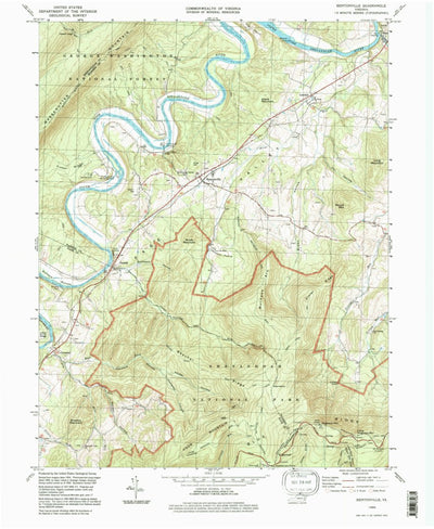 A 1994 historical topographic map of Bentonville in Virginia produced by the United States Geological Survey (USGS). It shows contour lines, place names, water bodies and roads. Map services and data available from U.S. Geological Survey, National Geospatial Program. Map was obtained from https:/...