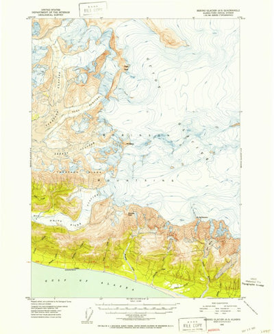 A 1950 historical topographic map of Bering Glacier A-3 in Alaska produced by the United States Geological Survey (USGS). It shows contour lines, place names, water bodies and roads. Map services and data available from U.S. Geological Survey, National Geospatial Program. Map was obtained from ht...
