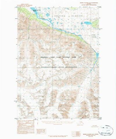 A 1984 historical topographic map of Bering Glacier D-2 in Alaska produced by the United States Geological Survey (USGS). It shows contour lines, place names, water bodies and roads. Map services and data available from U.S. Geological Survey, National Geospatial Program. Map was obtained from ht...