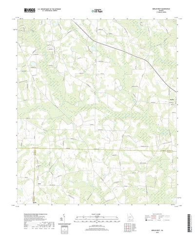 A digital topographic map of Berlin West in Georgia produced by the United States Geological Survey (USGS) in 2020. The map is part of the National Map series of 7.5 minute quadrangle maps. It shows contour lines, place names, water bodies and roads. Map services and data available from U.S. Geol...