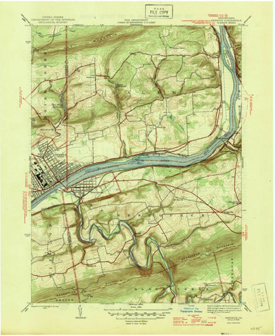 A 1946 historical topographic map of Berwick in Pennsylvania produced by the United States Geological Survey (USGS). It shows contour lines, place names, water bodies and roads. Map services and data available from U.S. Geological Survey, National Geospatial Program. Map was obtained from https:/...