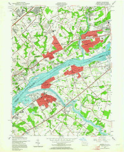 A 1955 historical topographic map of Beverly in New Jersey produced by the United States Geological Survey (USGS). It shows contour lines, place names, water bodies and roads. Map services and data available from U.S. Geological Survey, National Geospatial Program. Map was obtained from https://w...