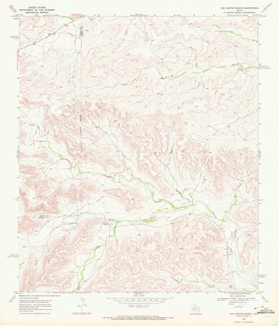 A 1969 historical topographic map of Big Canyon Ranch in Texas produced by the United States Geological Survey (USGS). It shows contour lines, place names, water bodies and roads. Map services and data available from U.S. Geological Survey, National Geospatial Program. Map was obtained from https...